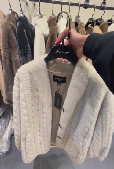 Gilet torsadé épais en fausse fourrure beige - Lola