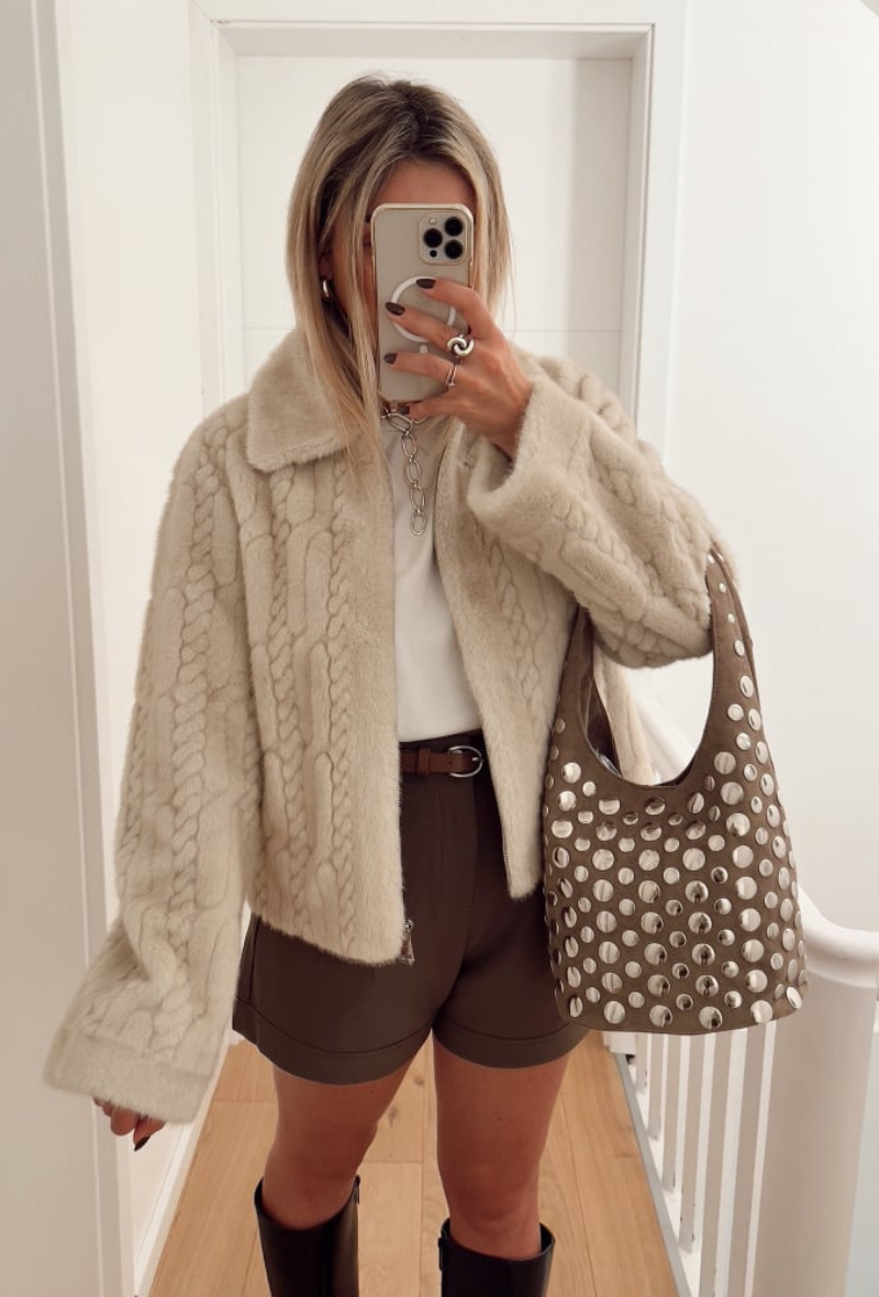 PRÉ-COMMANDE veste courte torsadée en fausse fourrure - Ésmé