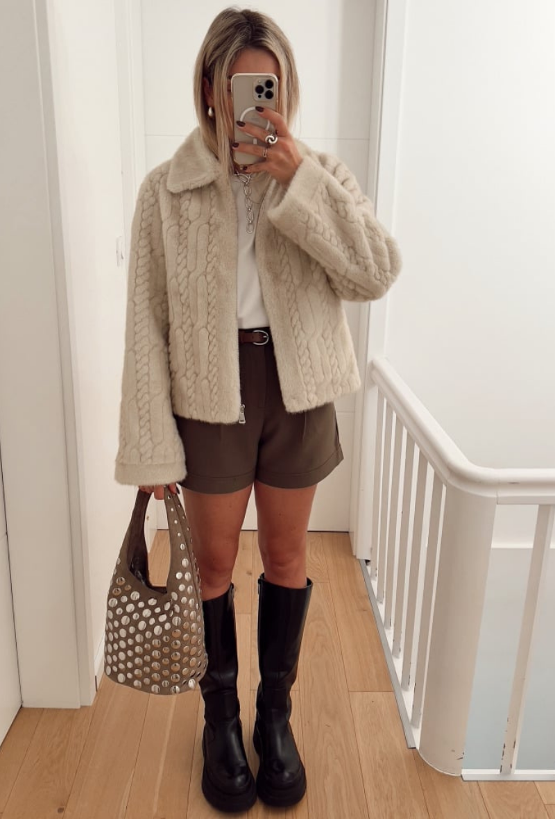 On est clairement sur la veste coup de cœur du moment, une fausse fourrure torsadée ultra douce, hyper cosy et surtout… canon de chez canon ! Son relief façon torsades lui donne une VIBE UNIQUE, chic, parfait pour booster n’importe quel outfit.