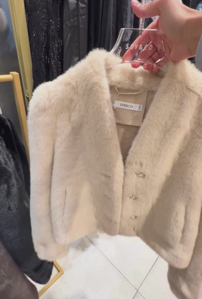 Coupe droite et légèrement courte pour une touche moderne et féminine. Sa fausse fourrure toute douce apporte un max de confort et de chaleur, tout en restant hyper agréable au toucher.